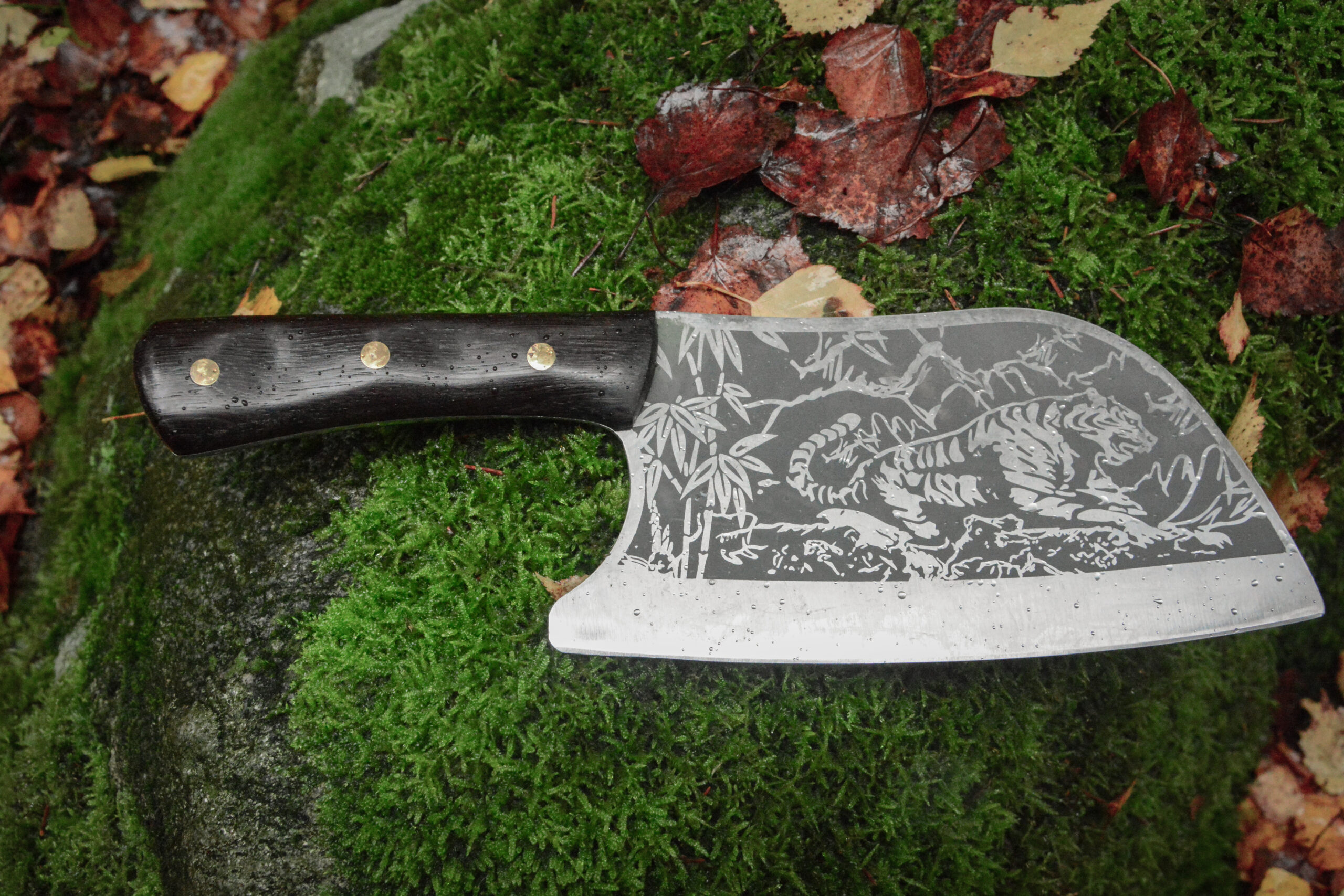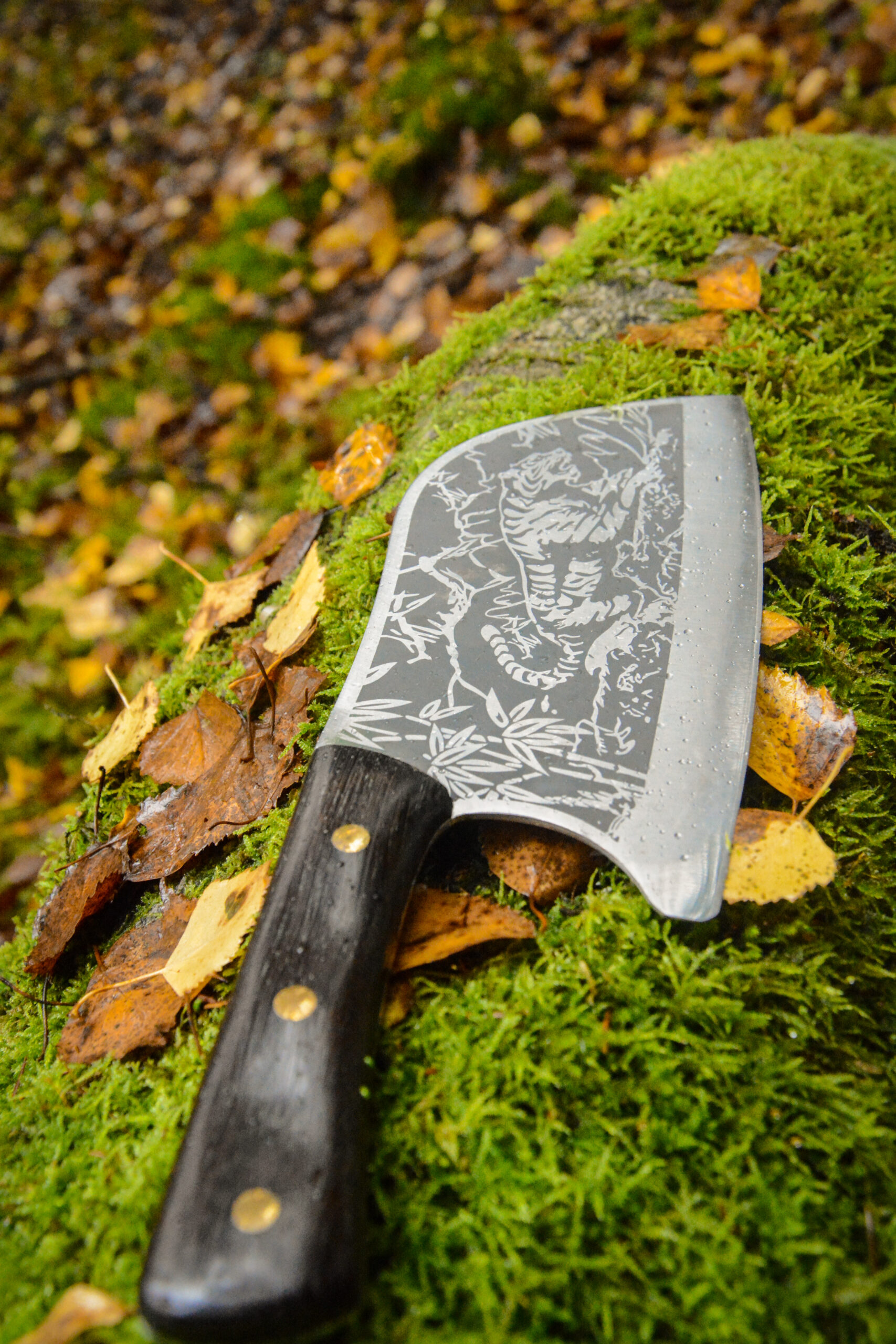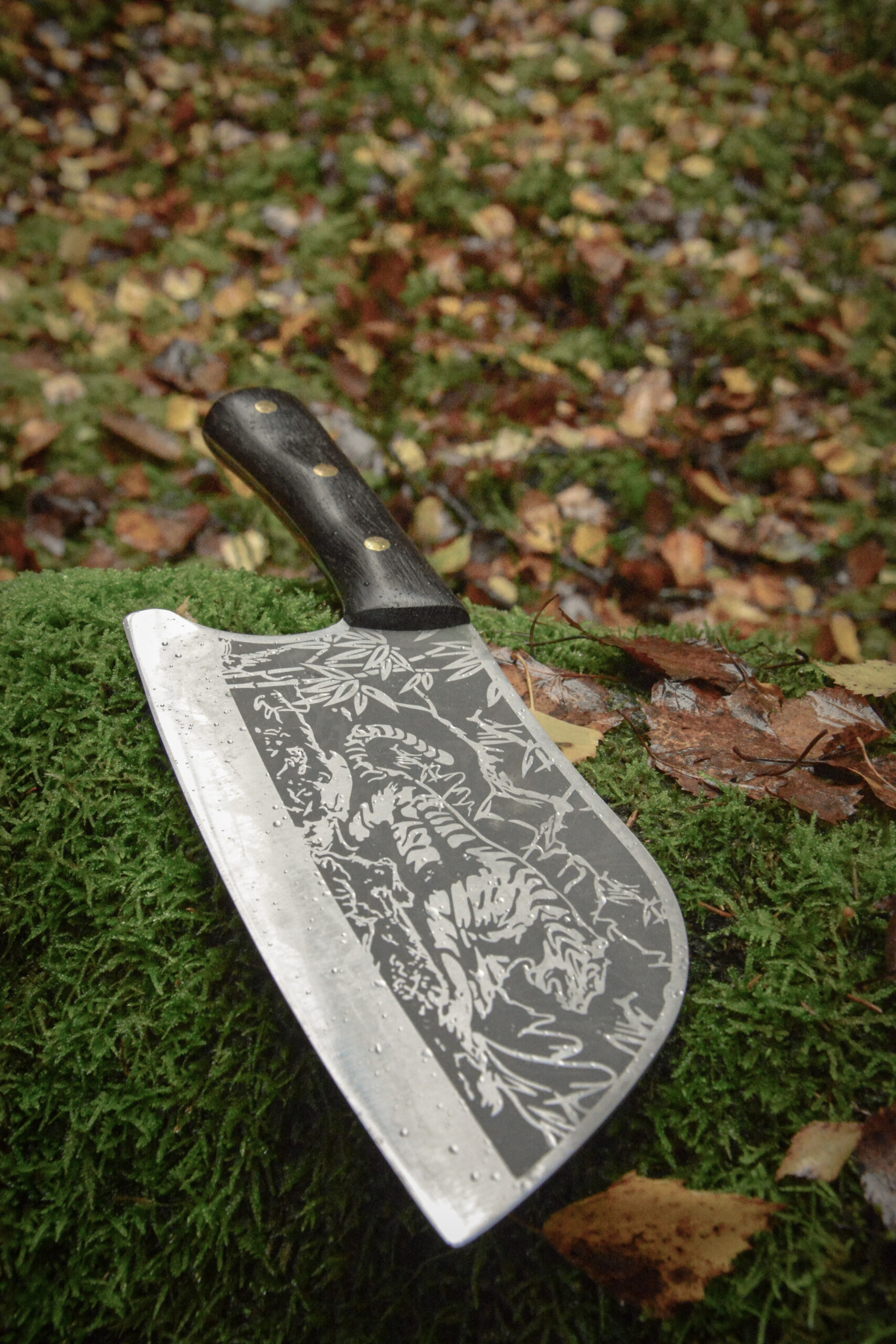 Kapoklės geležtė yra plati ir aštri su švelniai išlenktu ašmenų kraštu, leidžiančiu atlikti tiek smulkinimo, tiek kapojimo darbus virtuvėje. Ant geležtės išgraviruotas tigras – išsiskiria su unikaliu dizainu ir perkelia į Japonišką virtuvę, jos gamtą, bei kultūrą. Geležtės Ilgis – 19,5cm.